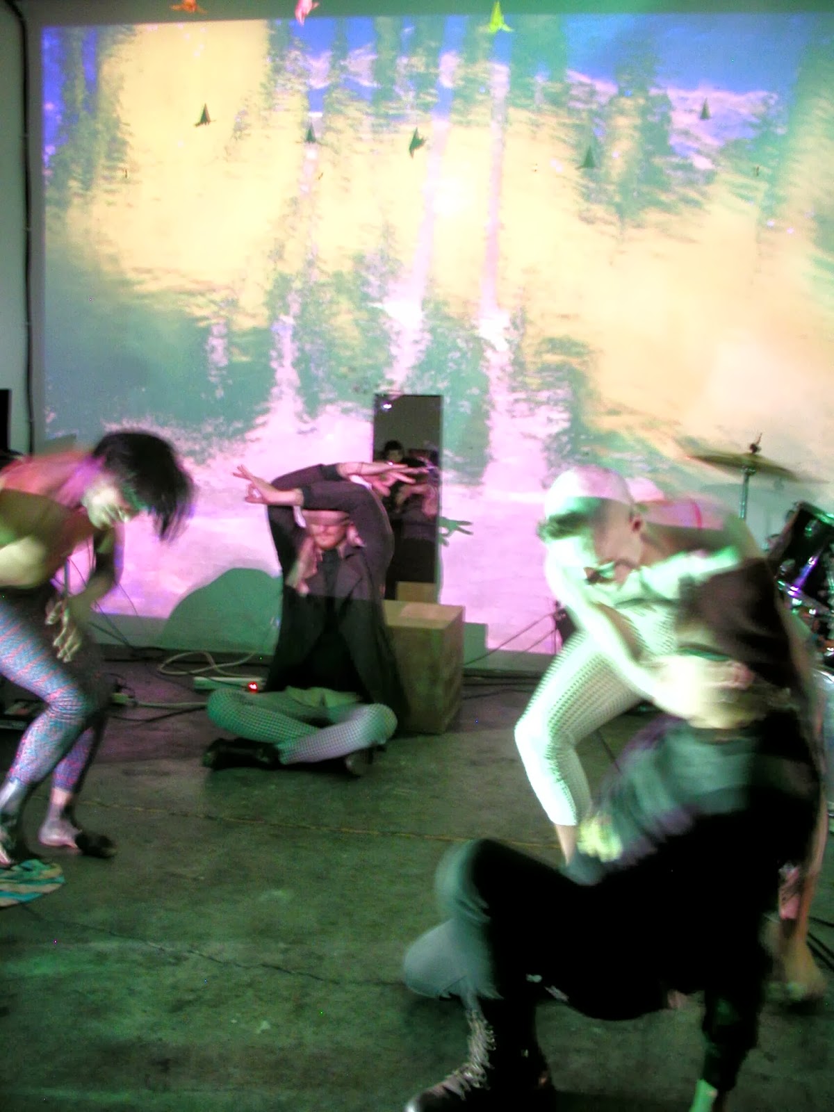 PARALLAX BEACH's "Parallax Scroll" is a multi-media performance piece that bridges the abstract landscapes of sound, light, time, and movement. A collective of artists, each utilizing different mediums, come together to make this unique work. Wes Johansen creates a visual representation of abstract thought through digital video projection, edited live and synchronized to synthesizers. Mike Meanstreetz uses avant-garde percussion and composition techniques tangling the participants of this ritualistic performance in a web of synesthesia . These elements are accentuated as josie j conveys transformation to witnesses through ritualism/ meditative movement, influenced partly by Butoh training and a background in performance art. Also performing in this piece are Zachary Vidal (saxophone/sampled noise) providing textured mood, and Brennan Lowe (movement) setting the wheel of this cycle into motion.